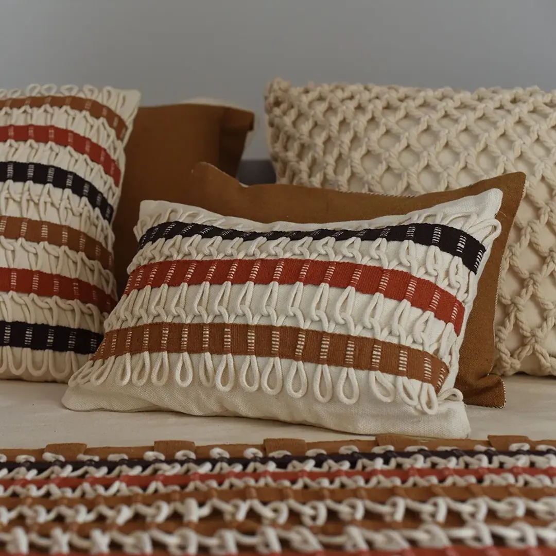 Capa de Almofada Trancê Diagonal Cru Pequena