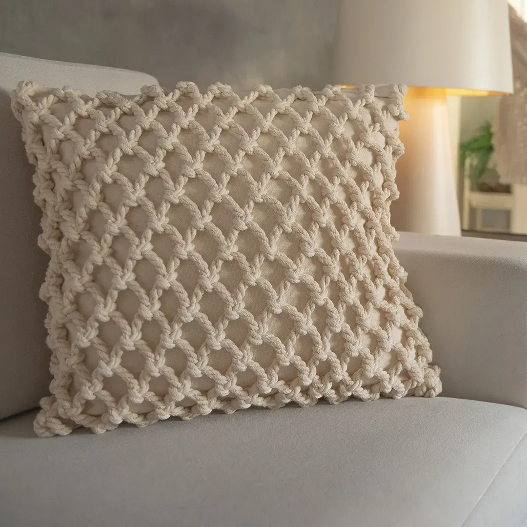 Capa de Almofada Macramê com Corda Cru Média quantidade