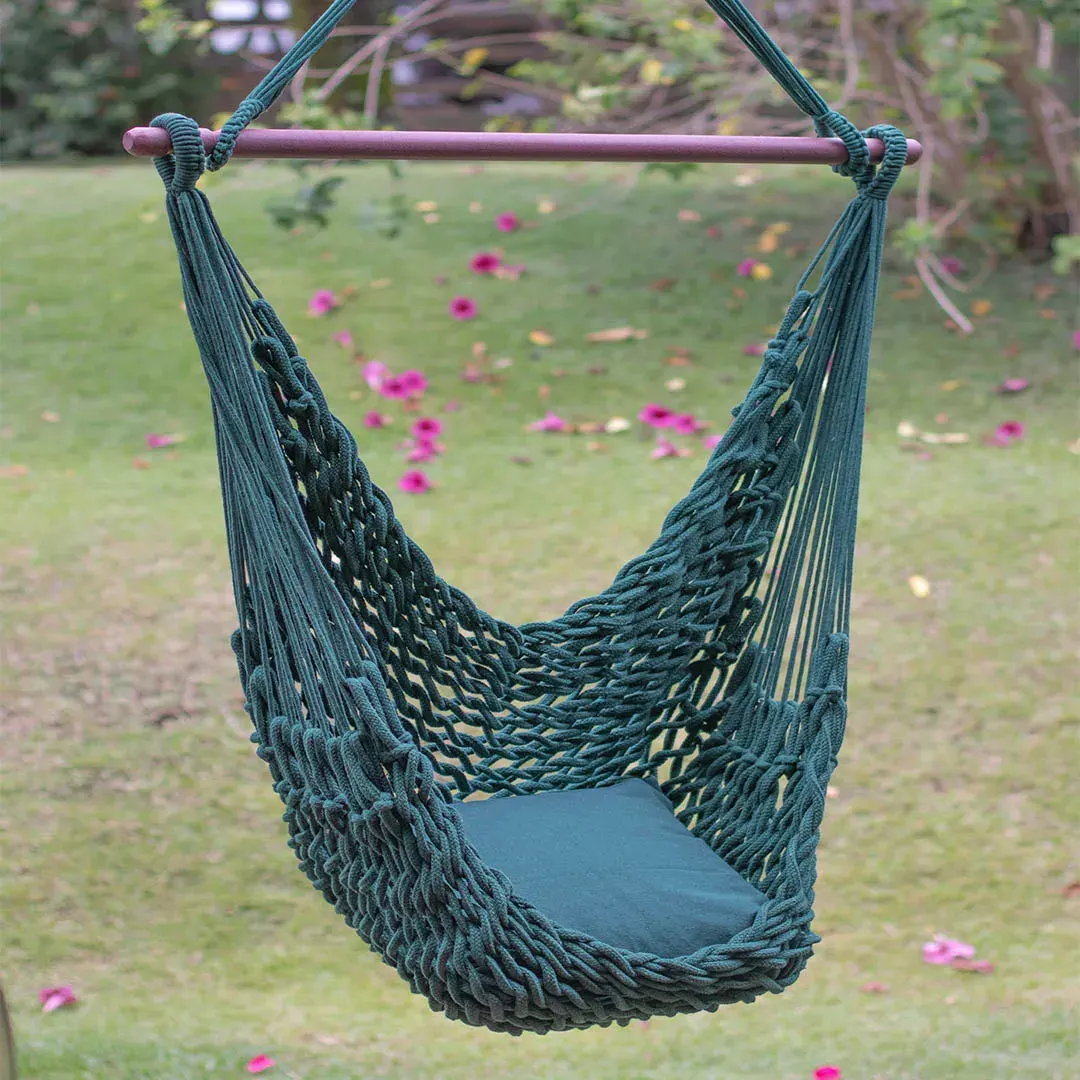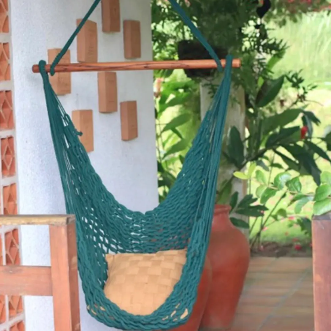 Rede Cadeira Corda manufaturada artesanalmente. Cor: Verde. Dimensões do tecido: 1,40 m x 0,55 m. Dimensão da madeira: 1,25 m.