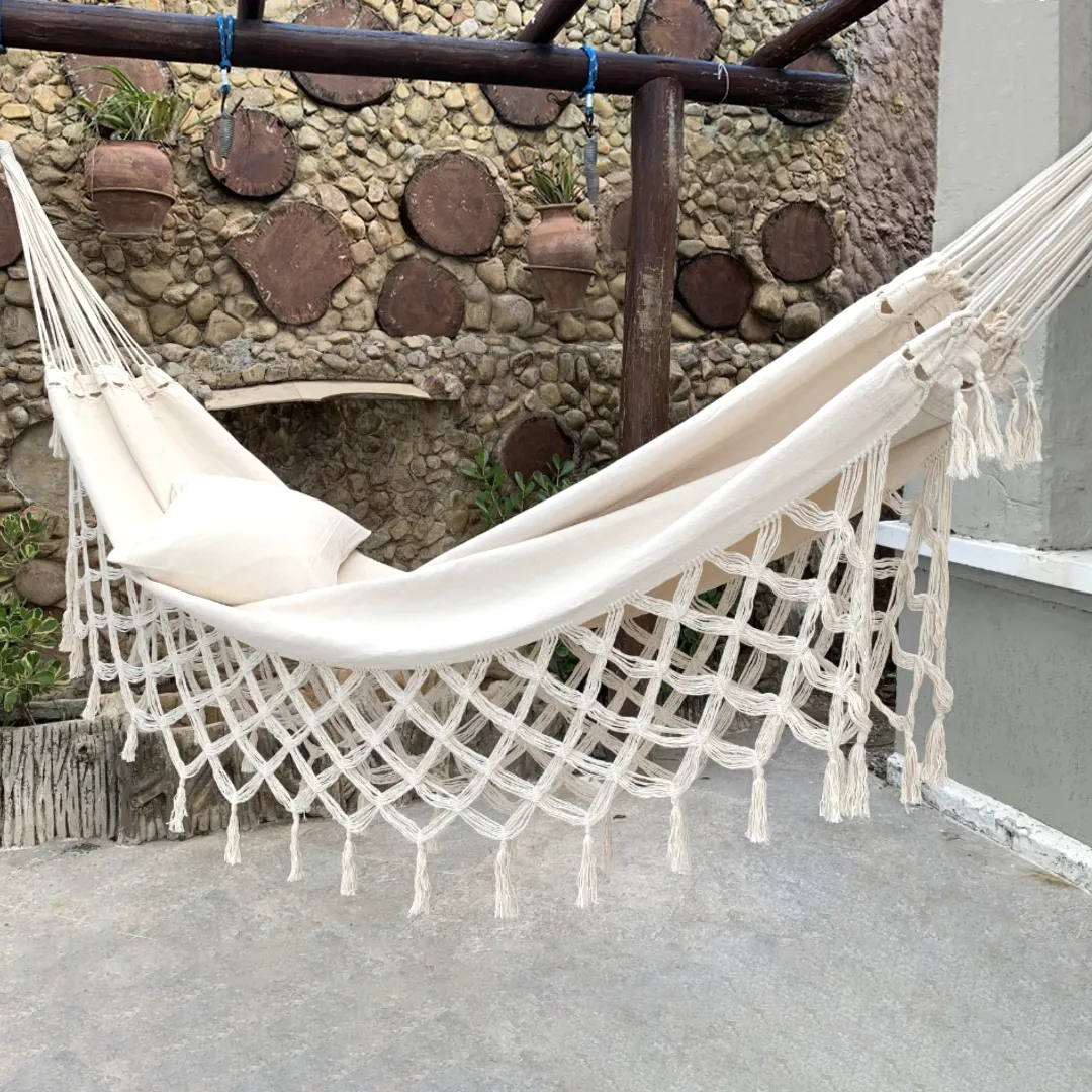 Rede para casal manufaturada artesanalmente. Coloração: Cru. Dimensões: 4,20 x 1,60 m